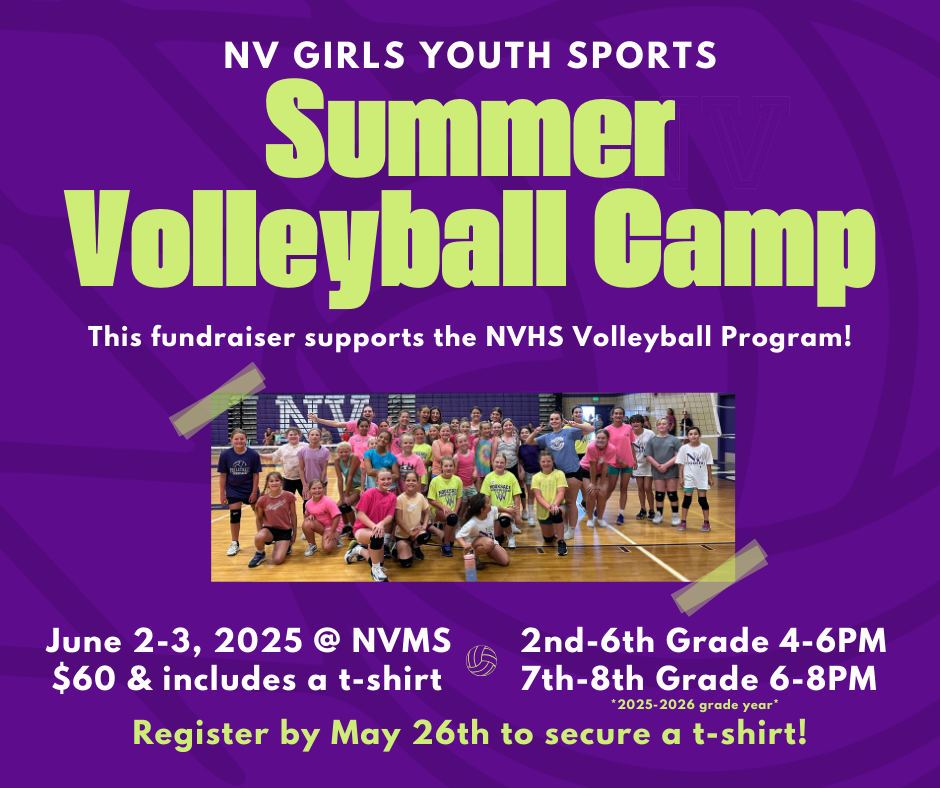 VB Camp Registration Link: 2025 NVGYS 2nd-6th and 7th/8th Girls Youth Volleyball Camp